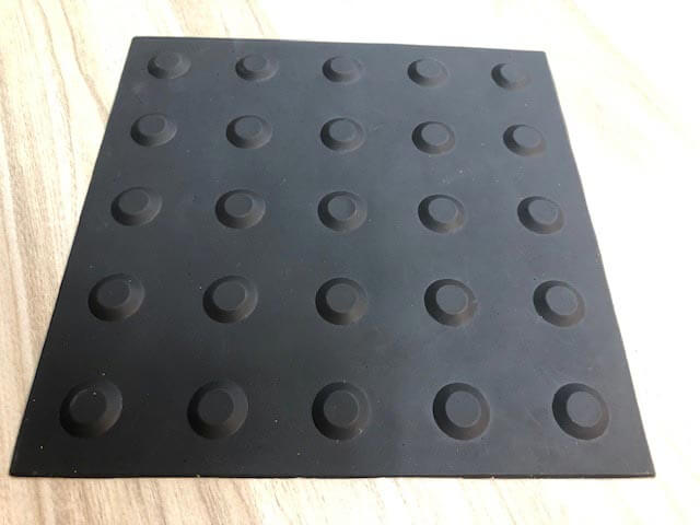 As placas pré-formadas de piso tátil de alerta são feitas com Plástico a Frio Bicomponente e consistem em placas padronizadas que contém um conjunto de relevos de seção troncocônica sobre placa.